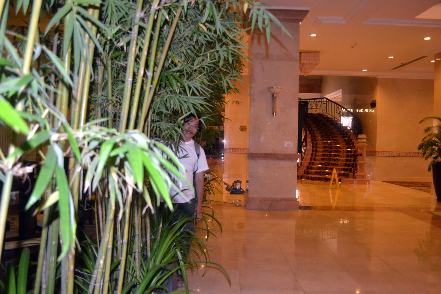 Bambouseraie dans le hall en guise de décoration, et quelqu’un qui s’y cache…?… cherchez bien
