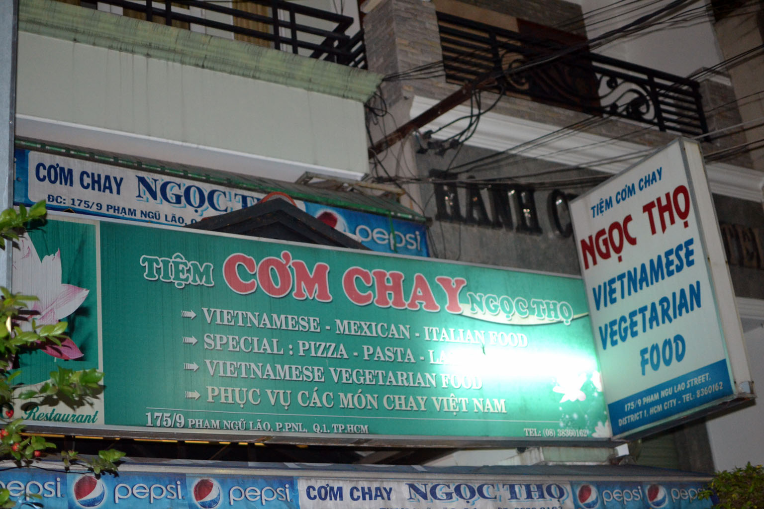 Notre cantine :-). Le restaurant Ngoc Tho est situé dans le quartier Pham Ngu Lao, 2 menus végétariens ou pas, prix pas trop cher par rapport aux autres restaurants. Les plats végétariens surpassent de très loin les non végé !